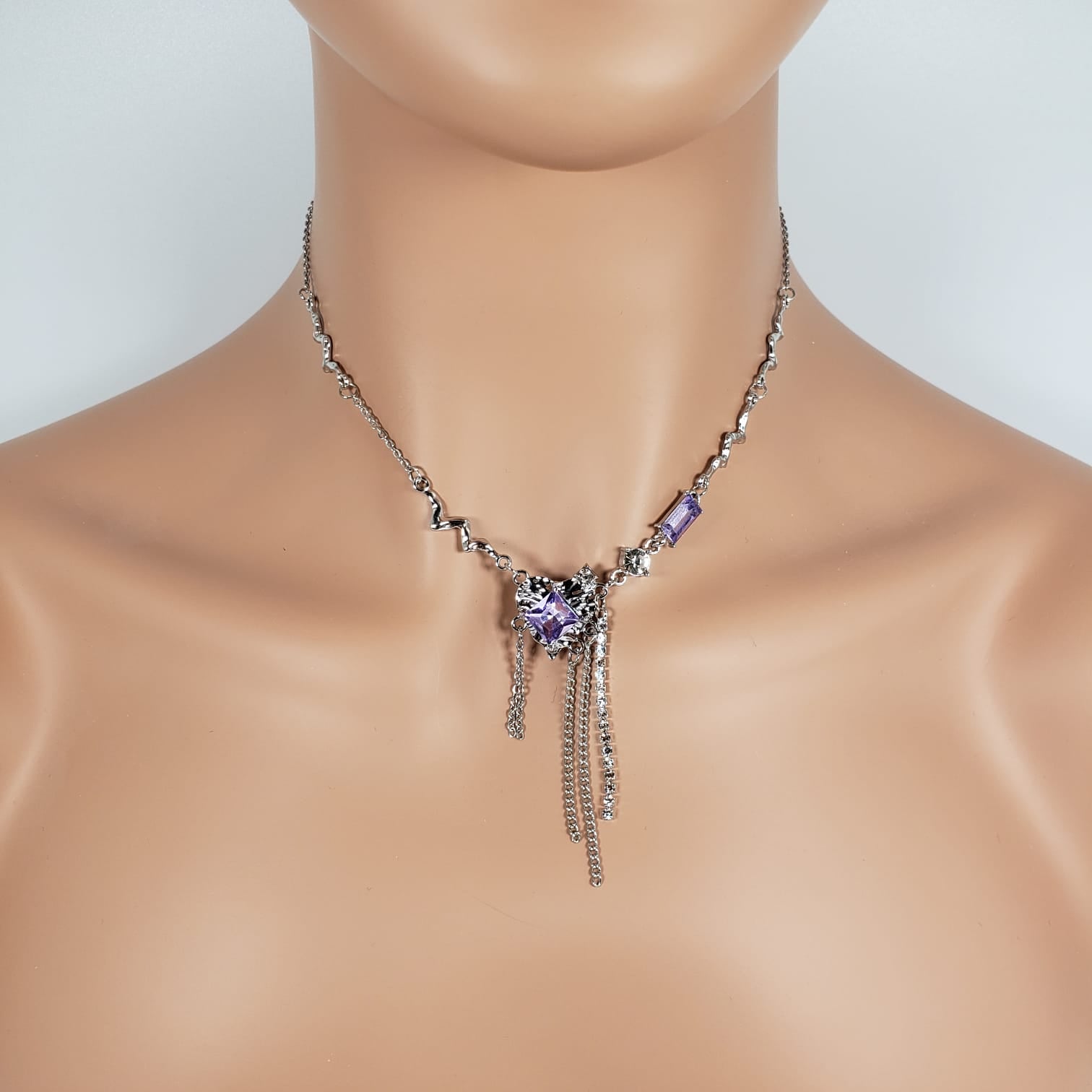Amerthyst Tassel Collar Necklace (CON 4012)
